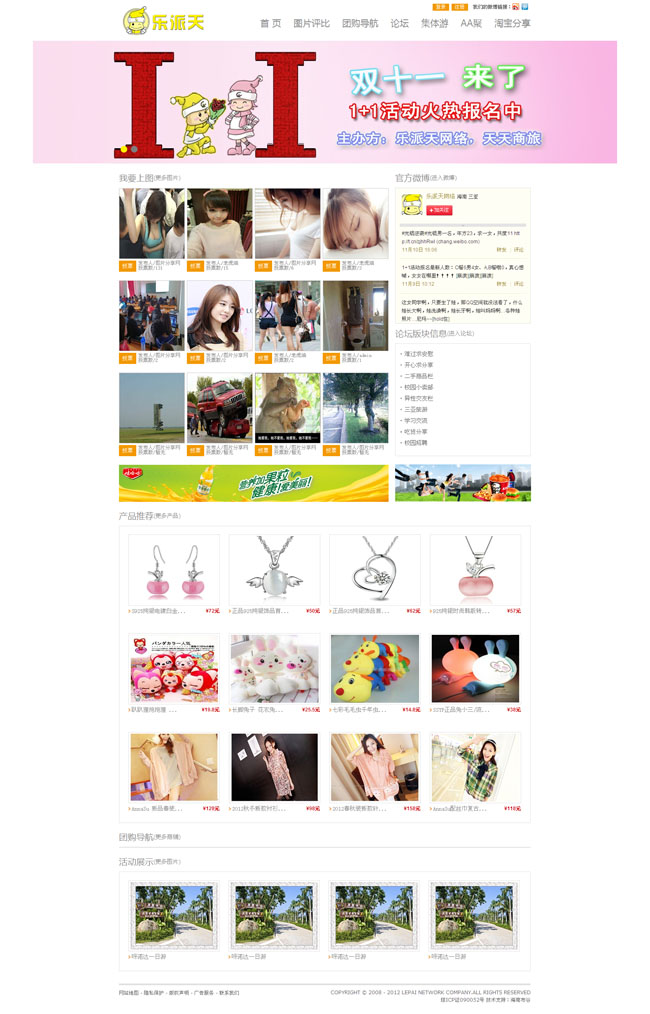 案例背景:樂派天網(wǎng)絡(luò),三亞大學(xué)城大的線上交流平臺,提供圖片交流分享,淘寶交流分享,各種論壇版塊。從線上到線下提供吃喝玩樂,學(xué)習(xí),工作等全方位立體式服務(wù)。