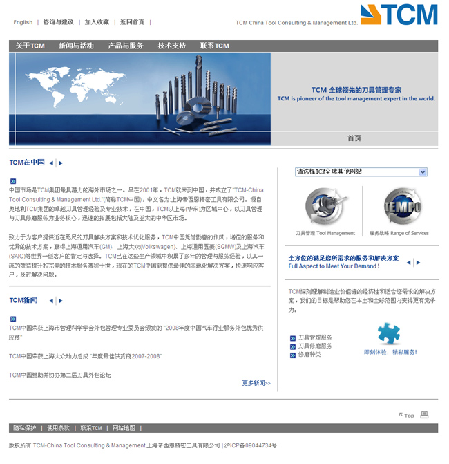 案例背景:中國(guó)市場(chǎng)是TCM集團(tuán)具潛力的海外市場(chǎng)之一。早在2001年,TCM就來(lái)到中國(guó),并成立了"TCM-China Tool Consulting & Management Ltd."(簡(jiǎn)稱(chēng)TCM中國(guó)),中文名為:上海帝西恩精密工具有限公司。源自?shī)W地利TCM集團(tuán)的卓越刀具管理經(jīng)驗(yàn)及專(zhuān)業(yè)技術(shù),在中國(guó),TCM以上海(華東)為區(qū)域中心,以刀具管理與刀具修磨服務(wù)為業(yè)務(wù)核心,迅速的拓展包括大陸及亞太的中華區(qū)市場(chǎng)。
