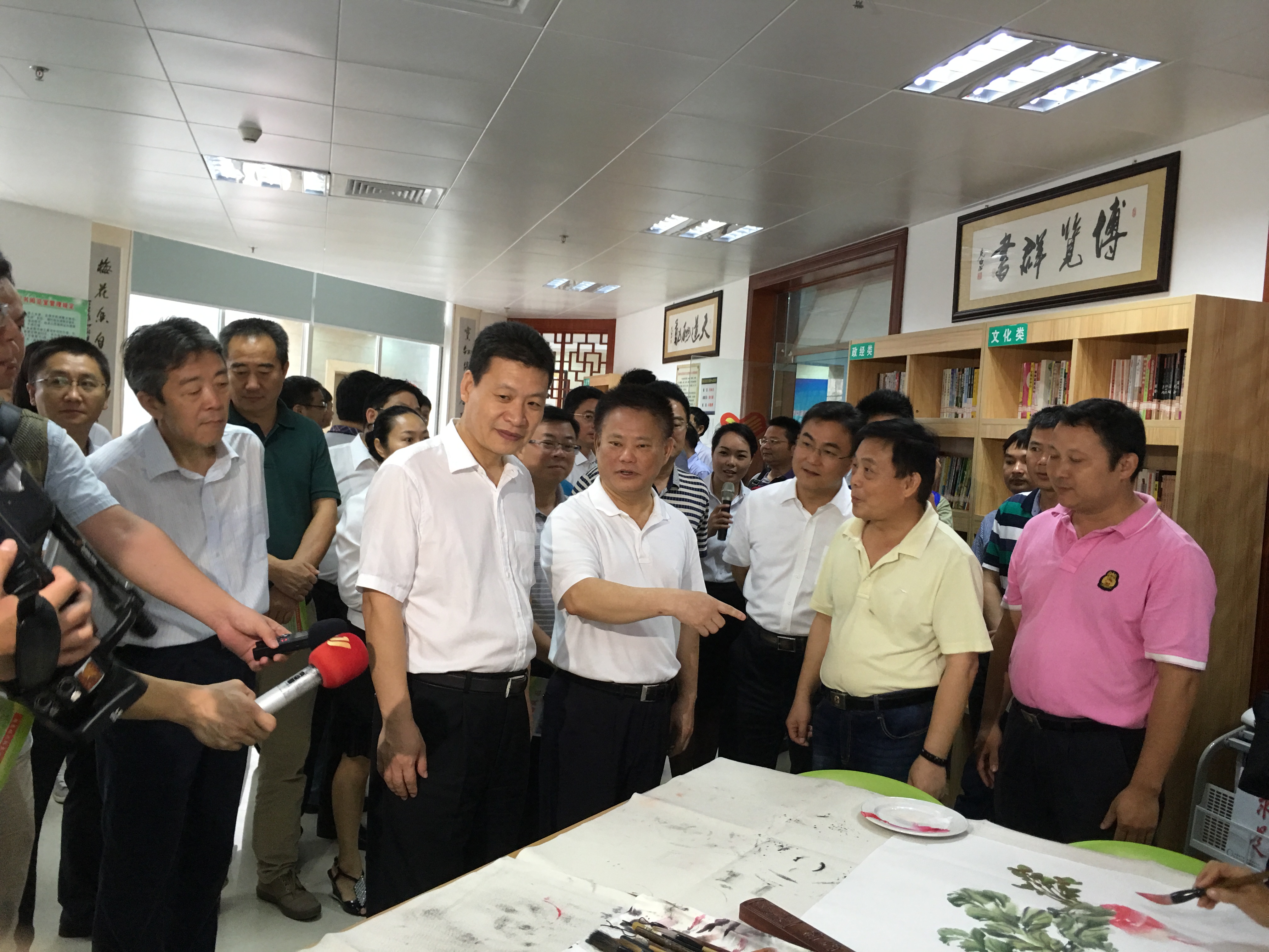 4月29日上午,省委常委、宣傳部部長許俊與??谑惺形瘯泴O新陽一行,到海南省萬泉河書畫社共建點美蘭區(qū)新安社區(qū)檢查指導(dǎo)工作,各市縣的宣傳部門負責人,也陪同參加了今天的書畫觀摩。