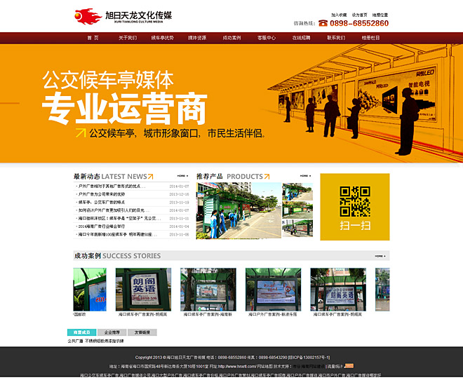 海南旭日天龍文化傳媒有限公司是一家集??趶V告媒體開發(fā)、經(jīng)營、發(fā)布,大型商業(yè)活動策劃執(zhí)行的文化企業(yè)。目前公司基礎(chǔ)主業(yè)是專業(yè)從事??诤蜍囃V告、??趹敉鈴V告經(jīng)營發(fā)布,現(xiàn)公司自身擁有??谑屑叭珝u各縣市公交候車亭燈箱媒體近600個廣告位,媒體終端有效覆蓋大型商業(yè)區(qū)、樓盤、學(xué)校、機關(guān)單位、車站等人流、車流旺區(qū),與國內(nèi)多家品牌客戶建立了長期廣告發(fā)布合作關(guān)系。